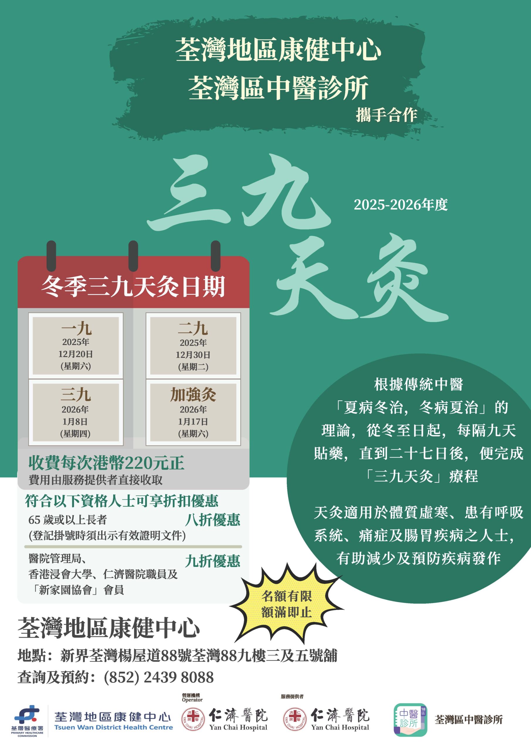 荃灣地區康健中心Facebook︰https://www.facebook.com/DHCTsuenWan/